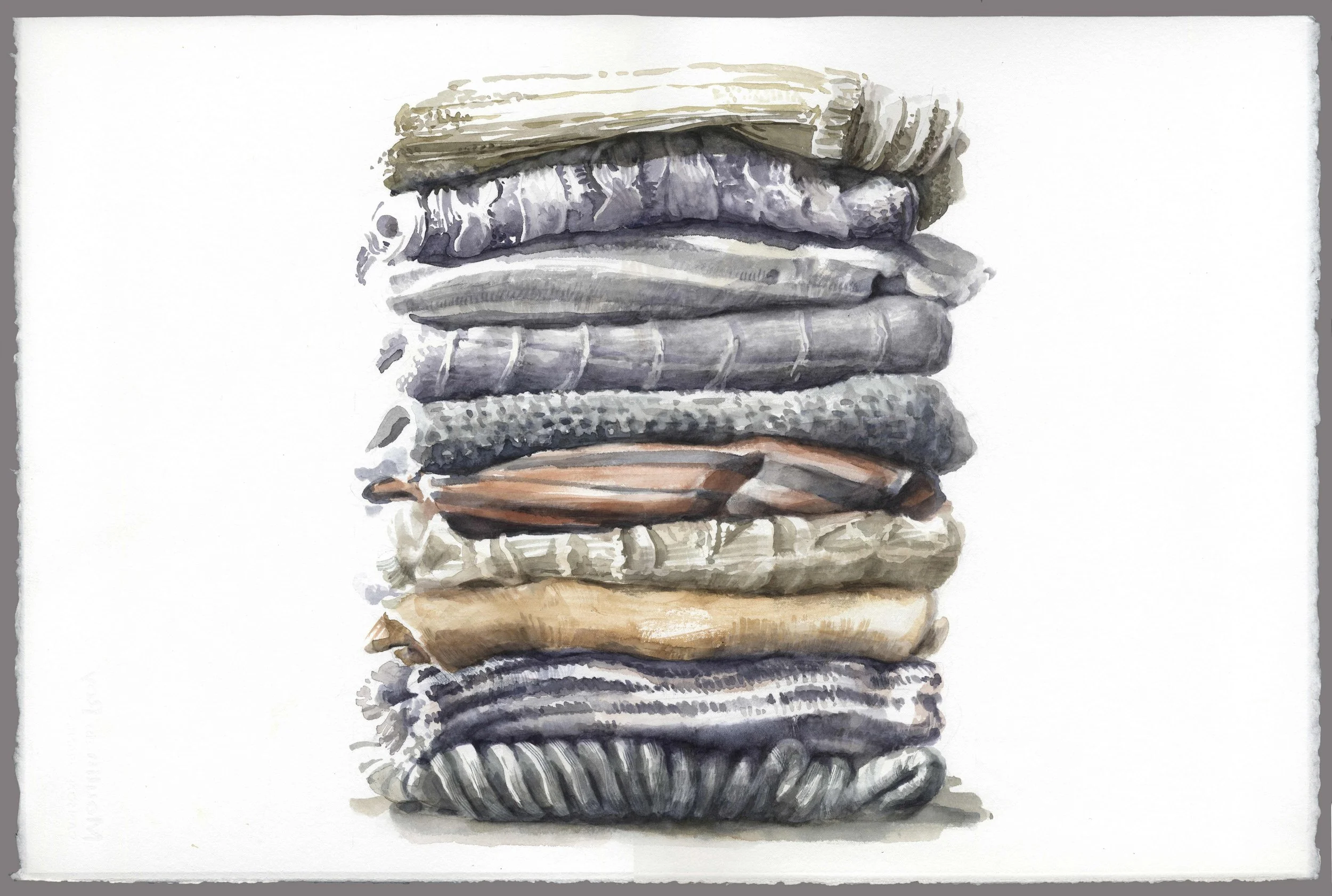 Nous pénétrons en archéologue dans un quotidien stratifié et dépareillé ; celui où l’on utilise des assiettes et des torchons, celui où l’on lit des livres, porte des vêtements, archive des documents, conserve des couleurs dans des boîtes… Celui aussi où l’on ne sait plus comment classer un monceau de feuilles volantes.